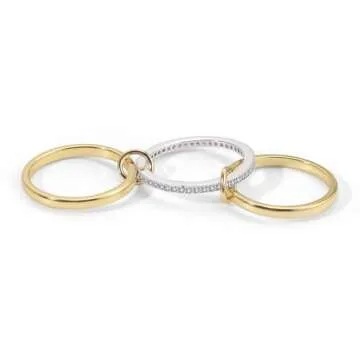 Show moreIntroducing the RAIFIN 18k Gold Plated Stackable Rings for Women — a must-have addition to any jewelry collection! This exquisite 3-ring set combines the elegance of two gold bands and one stunning cubic zirconia (CZ) sterling silver band, beautifully interlocked by a gold vein ring. With its sleek and minimalist design, this ring set is not only an eye-catching statement piece but also offers versatility for everyday wear. The shimmering bands reflect light seamlessly, ensuring that your fingers are the center of attention wherever you go.