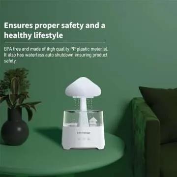 Rain Cloud Humidifier Water Drip, 2X Cool Mist Rate Ultrasonic Aromatherapy Diffuser by Ergonomc: Remote Controlled, 7 Color Night Light, 450ml, Auto Shut Off, Mushroom Humidifier, 1Yr Warranty