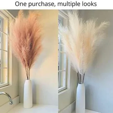 Rain Inc.| Brown & Cream Faux Pampas Grass| 6 PCS Extra Tall Full & Fluffy (47”/ 120cm| Floor & Table Vase Filler| Premium Fake Artificial Pompous| Tall Big Fluffy Boho Décor| Under $7 a stem!