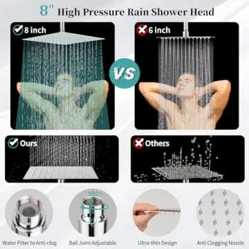 Rain Shower Head with Handheld, Lanhado 8'' High Pressure Rainfall 9 Settings Shower Head with 11'' Extension Arm, Holder & Hose, Anti-leak Waterfall, Chrome