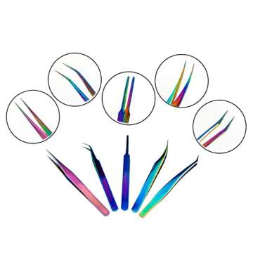 Rainbow Lash Tweezers Kit Tweezers for Eyelash Extensions Nail Art Ingrown Hair Craft Work Anti-Static Precision Stainless Steel Tweezers 5 Pcs