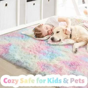 Rainbow Rugs for Girls Bedroom Living Room, 6x9 Rug, Fluffy Unicorn Decor, Pastel Area Rug for Kids, Fuzzy Shag Carpet for Baby Nursery, Playroom, Soft Plush Throw Mat