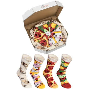 Rainbow Socks - Pizza Box Socks - 4 pairs MIX Vege Capriciosa Pepperoni Cotton Socks - Made In Europe