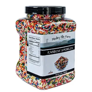 Show moreIntroducing the Rainbow Bulk Sprinkles by Medley Hills Farm, a delightful addition to anyone’s baking supplies. This 2.2 lbs container is filled with vibrant, colorful sprinkles that are perfect for creating a visually stunning dessert. These aren't just ordinary sprinkles; they're gluten-free, non-GMO, and Kosher, making them a great choice for everyone. Whether you're decorating cupcakes, enhancing the appearance of cakes, or making an everyday dessert special with ice cream, these sprinkles bring an element of joy and flavor to every bite. Each sprinkle is crafted with care, ensuring you taste the quality with every use, thanks to the family-owned ethos behind Medley Hills Farm.