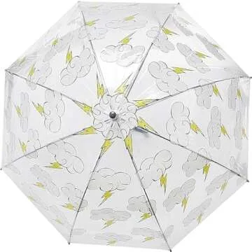 Rainbrella Kids Plastic Umbrella, Sky Collection Rainbows Umbrella, Lightening Bolts Design, Clear Umbrella with Hook Handle