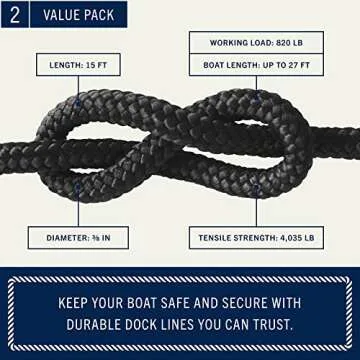 Rainier Supply Co. Boat Dock Lines & Rope -2pk 15ft x 3/8" or 25ft x 1/2", Boat Ropes for Docking - Premium Double Braided Nylon Dock Rope - Mooring Line with 12" Eyelet - Boat Rope - Black