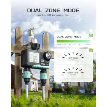 Show more If you are looking for a reliable and innovative way to manage your garden watering effortlessly, look no further! The RAINPOINT Water Hose Timer is designed to make your outdoor watering tasks simpler and more efficient. With the capability to control two distinct zones, this timer allows for customized watering frequencies, start times, durations, and end times tailored to your garden's specific needs.