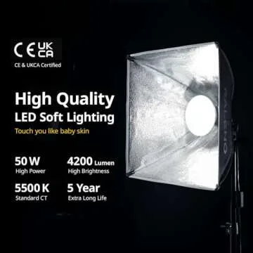 RALENO Softbox Photography Lighting Kit, 16'' x 16'' Softbox Lighting for TikTok with LED Bulb (50W | 5500K | 97 CRI | TLCI≥97), Continuous Lighting for Video Recording & Photography Shooting