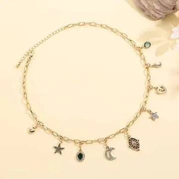 Rambling Rose Bohemia Gold Color Crystal Star Moon DIY Necklace,Tassel Pendant Necklaces,For Women Party Jewelry Accessories