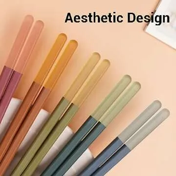 Random Mood Chopsticks Reusable Dishwasher Safe, Cooking Chopsticks, Korean Japanese Chinese Chopsticks, Fiberglass Chopsticks, Cute Chopsticks, Non-Slip, Ice Fog Multi Color, 5 Pairs, 9.5in/24cm