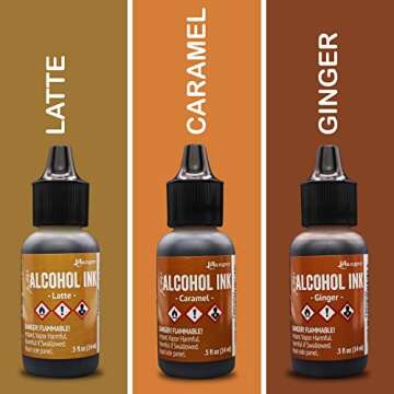 Show more Experience creativity like never before with the Ranger Tim Holtz Adirondack Alcohol Ink – Cabin Cupboard Set. This exquisite set features three rich hues: Carmel, Ginger, and Latte that perfectly blend to inspire your artistic endeavors. Developed with superior quality in mind, these alcohol inks are acid-free, ensuring both safety and longevity in your projects. The inks are quick-drying, allowing you to layer and experiment without the waiting time. Collaborated with the renowned Tim Holtz, this line boasts high saturation and transparency, making them incredibly versatile for various applications.
