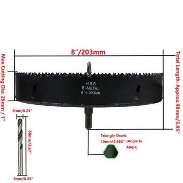 Rannb Hole Saw 8-inch Dia Hole Cutter Drill Bit for Drilling Holes in Wood, Plastic, Drywall, Thin Metal