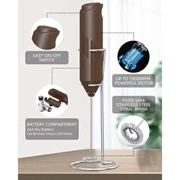 Rantizon Milk Frother Handheld, Hand Frother for Coffee, Stainless Steel Electric Milk Frother Whisk, Mini Drink Blender, Coffee Mixer and Foam Maker for Latte,Matcha,Cappuccino in Office Home,Brown
