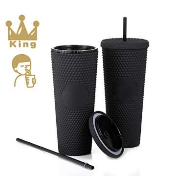 RANYAO 24oz Matte Plastic Studded Cup - Stylish Insulated Tumbler with Lid