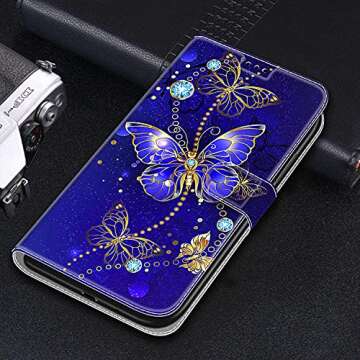 Ranyi for Consumer Cellular ZMax 10 Case, ZTE Z6250 Case, Cute Butterfly Pattern Leather Wallet Case with Credit Card Holder Kickstand Strap Flip Folio Magnetic Wallet Case for ZTE ZMax 10 -Blue