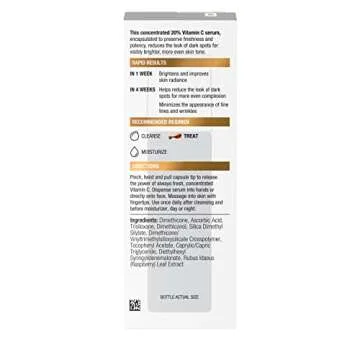 Vitamin C Brightens Dark Spots: Serum contains 20% vitamin C to brighten dark spots and even skin tone.
