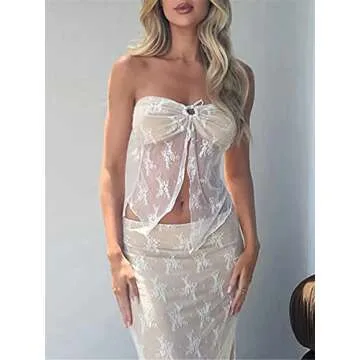 Raruxxin Women 2 Piece Skirt Set Sleeveless Hollow Crop Tops Bodycon Wrap Maxi Skirt Outfits Y2k Summer Party Club Streetwear