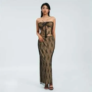 Raruxxin Women 2 Piece Skirt Set Sleeveless Hollow Crop Tops Bodycon Wrap Maxi Skirt Outfits Y2k Summer Party Club Streetwear