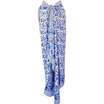 Rastogi Handicrafts 100% Cotton Block Print Sarong Swimsuit Wrap Cover Up Long Women’s Apparel Fabric (73" x 44") (Blue 5)