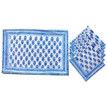 Rastogi Handicrafts Hand Block Cotton Indian Style Dining Set - 12 Pieces (Blue 4)