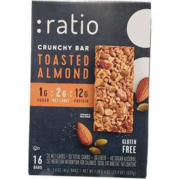 Ratio Toasted Almond Crunchy Bar - 12g Protein, Gluten Free, 16 Count