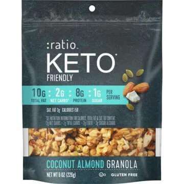 Yes, the ratio Trio Keto Friendly Coconut Almond Granola is specifically designed to be low-carb and keto-friendly, containing only 2g of net carbs per serving.