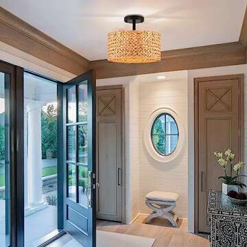 Show more This stunning Rattan Pendant Light brings the essence of nature into your home décor. Hand-woven from high-quality, environmentally-friendly materials such as tough natural seagrass, this light fixture embodies sustainability while enhancing your living space with its warm, rustic charm. The organic color creates a strong natural farmhouse style, making it a favored choice for those who prioritize both style and environmental consciousness.
