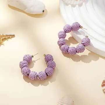 Show moreEmbrace the vibrant energy of summer with our exquisite Rattan Earrings for Women! These bohemian statement earrings are a stunning accessory that adds a bright pop of color to any outfit. Fashioned from natural rattan and handcrafted in Madagascar, each pair boasts a unique woven design adorned with 8 pieces of colorful raffia balls. They’re designed to complement your sundresses perfectly, making them a seasonal must-have that embodies the carefree spirit of summer days spent at the beach.