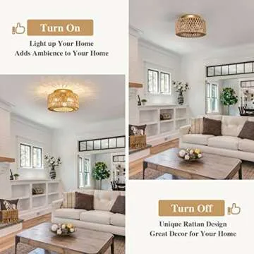 Why You Will Love This Product? The Rattan Light Fixtures Ceiling Mount offers much more than just illumination; it brings an emotional element to your space. Imagine walking into a room bathed in soft, graceful light filtered through intricately woven rattan. This enchanting light fixture ensures that every moment spent in your home is adorned with warmth and beauty. It enhances your lifestyle by combining functionality with stunning design, making every gathering memorable and every quiet evening spent at home cozy.