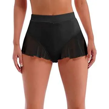 - Stylish Rave Design: High-waisted bikini shorts featuring elegant sheer mesh ruffles.