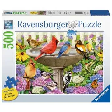 Ravensburger at The Birdbath 500-Piece Large Format Jigsaw Puzzle - Enjoyable for All Ages!
