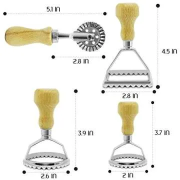 Ravioli Maker Cutter Stamp Set – Leading Dough Cutter and Press Stamps with Wooden Handle –for Ravioli, Pasta, Dumplings Lasagna, Pierogi – Upgraded 2019 3Pcs Stamps, 1 Pasta/Pastry Cutter Wheel