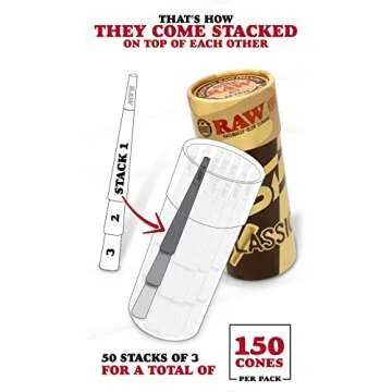 RAW Cones Classic 1-1/4 Size - 150 Pack - Slow Burning Pre Rolled Cones with Tips & Packing Tubes Included