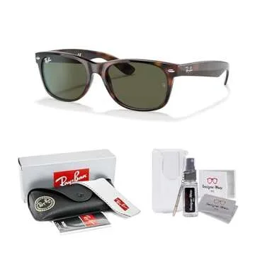 Ray-Ban RB2132 NEW WAYFARER Square Sunglasses For Men For Women + BUNDLE with Designer iWear Eyewear Kit (Tortoise/Crystal Lens G-15 Green)
