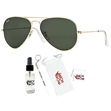 Ray-Ban RB3025 Metal Aviator Sunglasses + Vision Group Accessories Bundle (Arista/Crystal Green, 55),unisex-adult