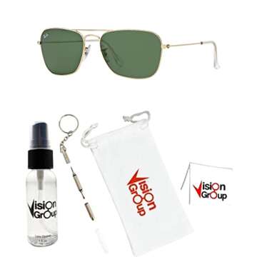 Ray-Ban RB3136 Caravan Sunglasses + Vision Group Accessories Bundle (Arista/Crystal Green (001), 55mm)