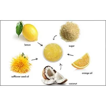 The scrub features natural and organic ingredients, primarily lemon and sugar, ensuring a gentle exfoliation.