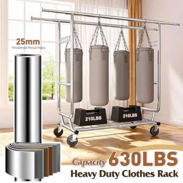 Raybee Clothes Rack,Clothing Rack 630 LBS Heavy Duty Clothes Rack with Wheels Clothing Racks for Hanging Clothes Rolling Clothes Rack Adjustable & Commercial Garment Rack 22" D x 75" W x 68" H