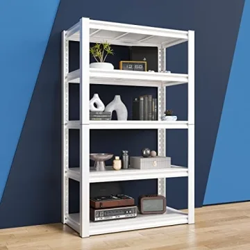 Show moreTransform your storage experience with the Raybee Heavy Duty Garage Shelving Unit, a perfect blend of strength, functionality, and versatility. Designed to meet the **rigorous demands** of both home and professional environments, this exceptional 5-tier shelving unit is constructed from quality metal with 2.2mm thick legs, offering an impressive weight capacity of 2000 lbs. Whether you're in need of storage in a bustling garage, a busy kitchen, or even a quiet basement, the Raybee shelving unit stands tall at **63 inches** with a footprint of **32" W x 16.5" D**, efficiently utilizing vertical space to keep your belongings neatly organized.