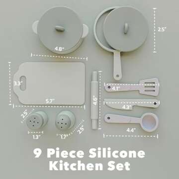 RayPlay Food-Grade Silicone Kid Play Kitchen Accessories – 9Pcs Kids Toy Kitchen Accessories Set With Play Pots And Pans – Sets For Kids Kitchen Pretend Play – Pretend Play Kitchen Toy Set For Cooking