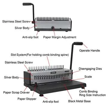 Rayson SD-1501A21 Binding Machine with Combs Set - 21 Hole / 200 Sheets Comb Binder for Punching or Binding