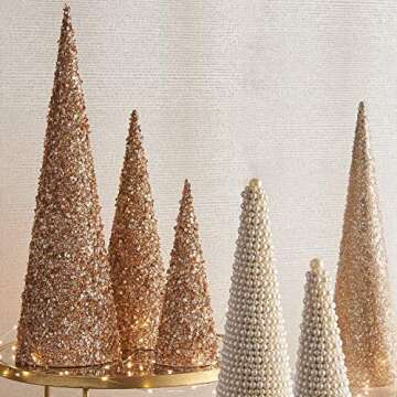 Raz 22 Inch, 17 Inch and 12 Inch High Jeweled Glittered Cone,Paper Christmas Trees Set of 3 - Champagne Gold