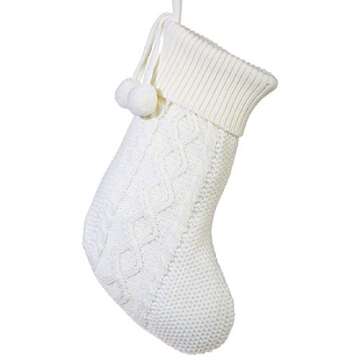 Show moreBring warmth and charm to your holiday decor with the Raz Classic Cable Knit Winter White Christmas Stocking. Crafted with intricate cable knit texture, this delightful stocking is not only a beautiful addition to your mantel or shelf but also a testament to quality craftsmanship. Made of durable polyester, it features a lovely winter white finish, complemented by playful pom pom accents that add a touch of whimsy. Measuring approximately 20 x 11 inches, it's perfectly designed to hold all of Santa's surprises. The convenient loop at the top ensures easy hanging, making preparation for the festive season a breeze. This stocking is a must-have for enhancing your Christmas ambiance, and rest assured, it holds its shape beautifully even when filled with gifts and goodies!
