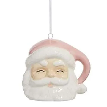 RAZ Imports Pink Santa Ornament - 3.5 Inch Ceramic Holiday Decor