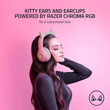 Show moreIntroducing the Razer Kraken BT Kitty Edition, a remarkable Bluetooth headset where vibrant aesthetics meet outstanding audio performance. Designed by the #1 best-selling gaming peripherals manufacturer in the US, this headset isn't just a stylish accessory; it's a game-changer for both casual listeners and dedicated gamers. Its stunning quartz pink finish, complete with playful RGB lighting, ensures that you not only hear every note but also look fabulous while doing so. The Razer Kraken BT Kitty Edition offers an immersive sound experience tailored for your listening needs, whether you're diving deep into the world of gaming or enjoying your favorite playlists while working from home.