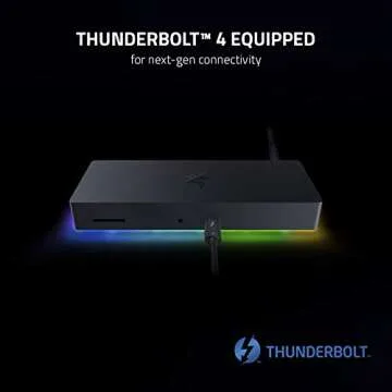 Show more Introducing the Razer Thunderbolt 4 Dock Chroma, a truly innovative docking station designed for tech enthusiasts and professionals alike. This premium product is fully Thunderbolt 4 certified, offering remarkable 40 Gbps connections while ensuring USB4 compliance. The dock provides a one-stop solution for laptop charging through its single port and the ability to wake your laptop from sleep using peripherals connected to it.