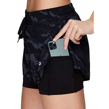 Utility meets style with the inclusion of a hidden tech pocket in the inner bike short, allowing you to keep essentials like your phone close at hand while you work out. Say goodbye to bulky bags and enjoy the freedom of movement! Furthermore, the double-layer construction features a 4.5-inch inseam, ensuring a secure fit created by the elastic waistband with drawstring.