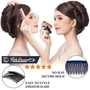 RC ROCHE ORNAMENT 12 Pcs Womens Girls Classic Side Slide Comb Premium Hair Accessory Pin Wide Teeth Solid Plastic Combs Bridal Pins Beauty Fashion Accessories, Medium Brown