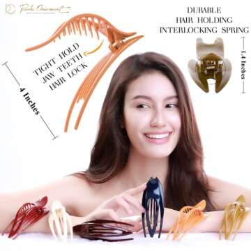 RC ROCHE ORNAMENT 6 Pcs Womens French Concord Curved Hair Clip No Slip Strong Grip Comfortable Hold Girls Ladies Beauty Accessory Fashion Pin Teeth Clamp, Large Classic Multicolor
