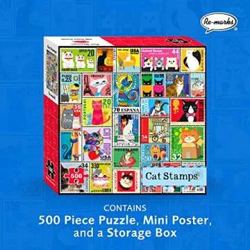 Re-marks Cat Postage-Stamp Collage Puzzle, 500-Piece Puzzle for All Ages
